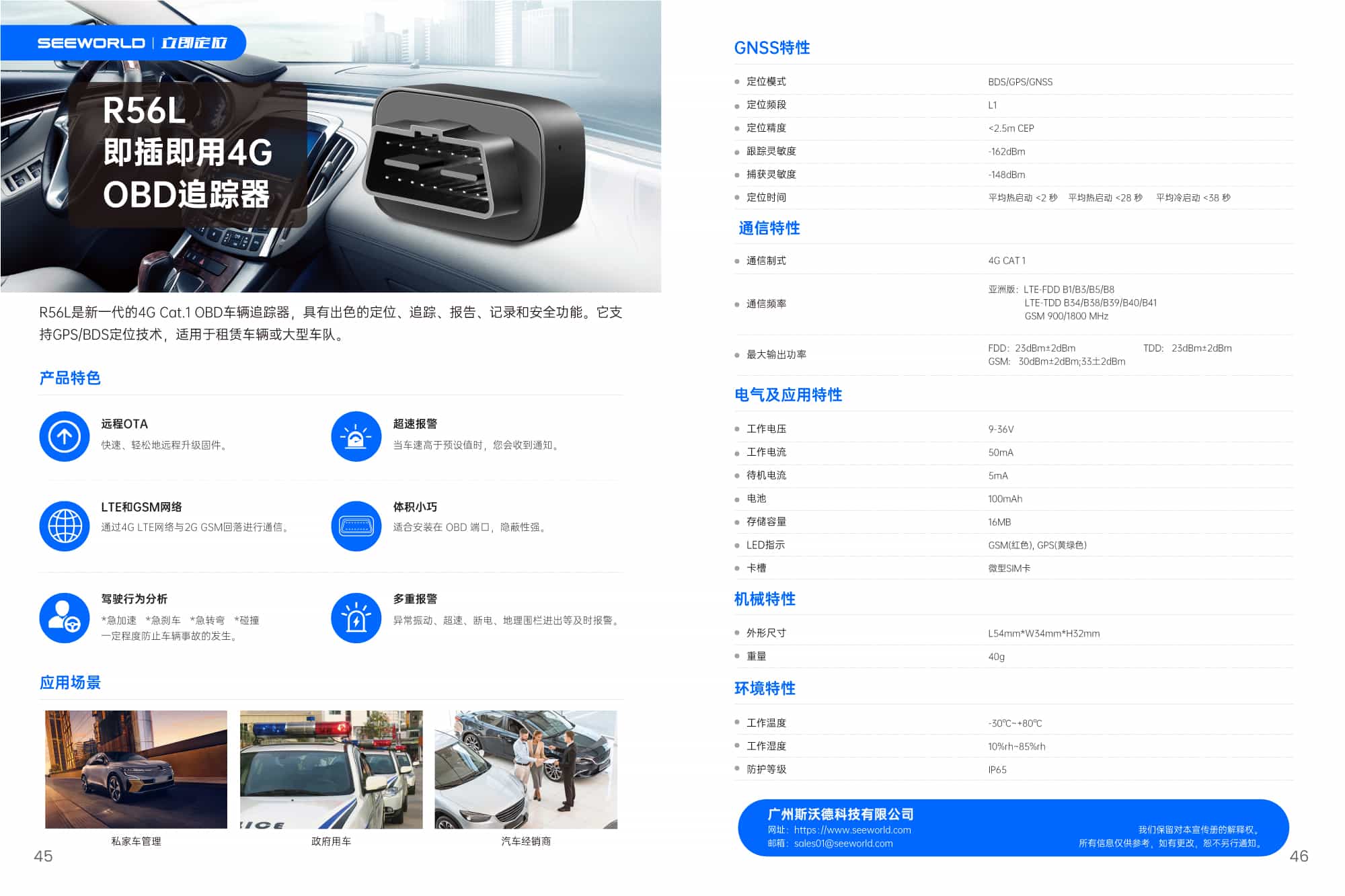 R56L是新一代的4G Cat.1 OBD車輛追蹤器,具有出色的定位、追蹤、報(bào)告、記錄和安全功能。它支持BDS/GPS/GNSS定位技術(shù),適用于租賃車輛或大型車隊(duì)。