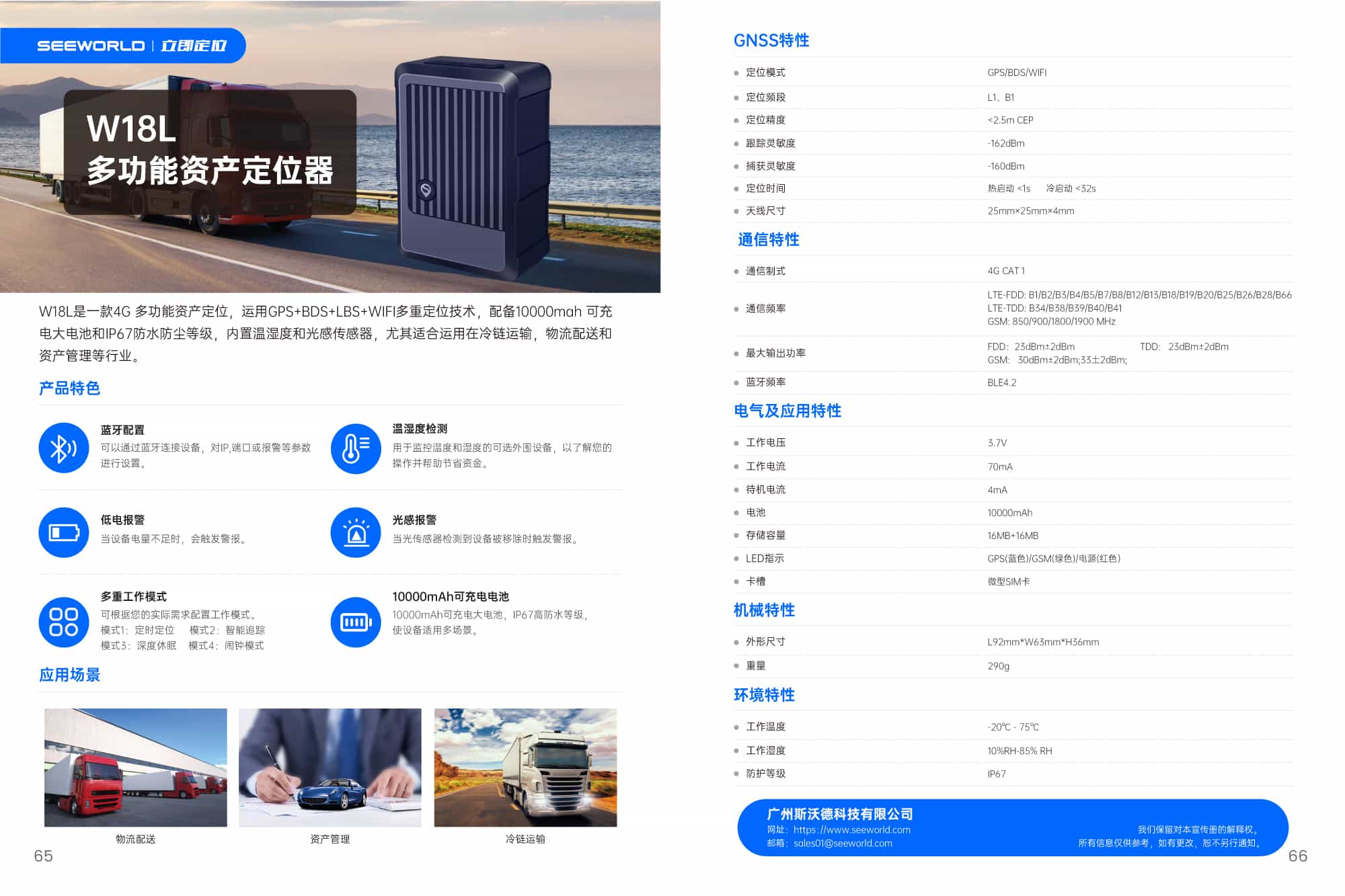 W18L是一款4G 多功能資產(chǎn)定位,運用GPS+BDS+LBS+WIFI多重定位技術(shù),配備10000mah 可充電大電池和IP67防水防塵等級,內(nèi)置溫濕度和光感傳感器,尤其適合運用在冷鏈運輸,物流配送和資產(chǎn)管理等行業(yè)。